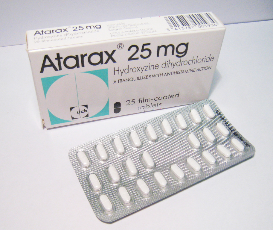 Atarax – anxiolytic for the treatment of neuroses and neurotic conditions, withdrawal of alcohol withdrawal syndrome. Significantly reduces itching in patients with hives, eczema and dermatitis. Has antiemetic effect.
