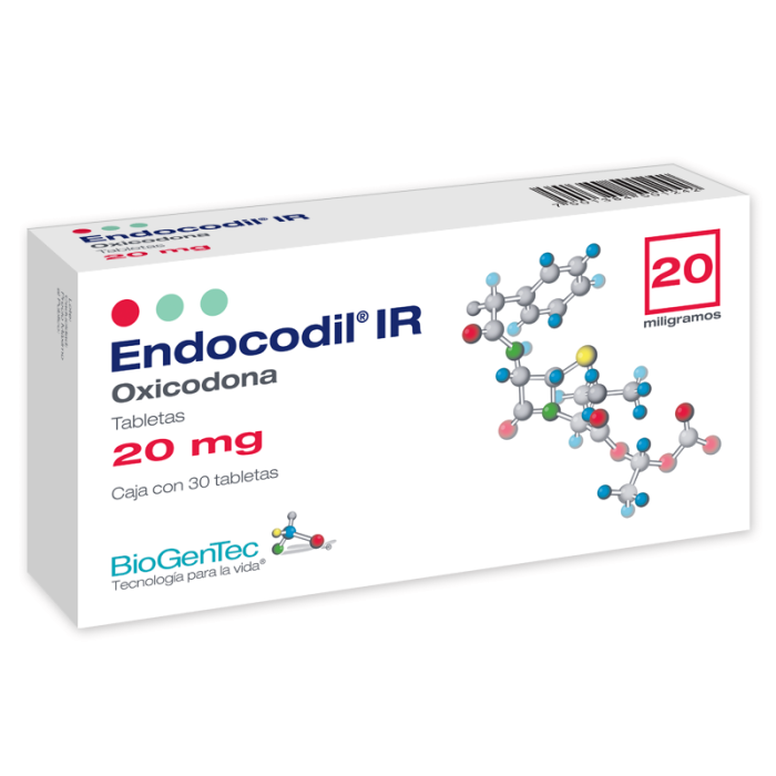 Oxycodone 20mg Blister packs. Pharma product. Brand Endocodil